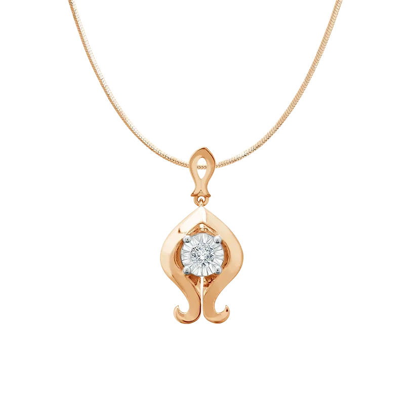 Kalung dari rose gold ini memberikan kesan hangat dan mewah. Desainnya cukup unik karena pada bagian tengah terdapat elemen bulat kecil yang menjadi pusat perhatian. Dari elemen bulat tersebut, dua rantai tipis menjuntai ke bawah dengan elemen hiasan di ujungnya.
