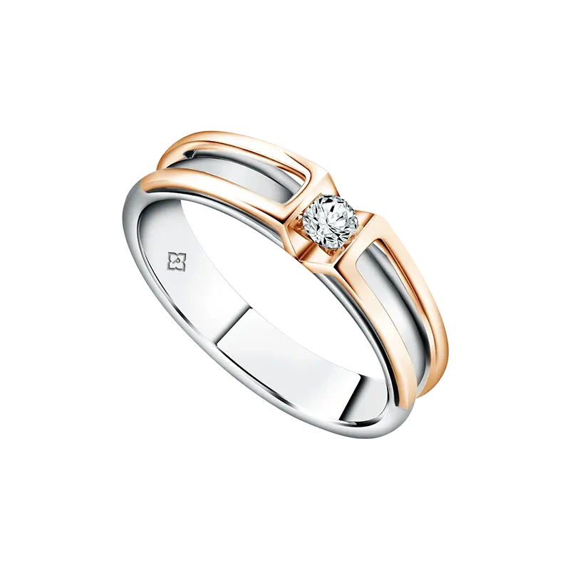 Cincin kawin Aretino Bersanding persembahan The Palace Jeweler dirancang sebagai cincin couple yang elegan dengan desain modern minimalis. Dihiasi 1 butir berlian F VVS dengan detail ukiran membentuk siluet diamond di bingkai cincin menciptakan nuansa yang simple melambangkan keindahan dan kesederhanaan cinta sejati yang abadi.