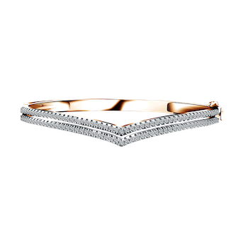 Desain gelang lainnya yang sudah pasti sempurna untuk membuat penampilan lebih menawan adalah gelang bernuansa rose gold berikut. Sematan berlian yang disusun sejajar membuat koleksi perhiasan berlian ini makin memesona.