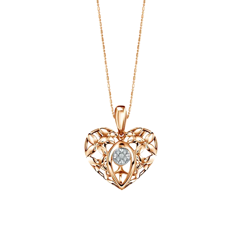 Liontin Kasmaran Kasih juga menjadi salah satu model liontin emas yang sangat cocok untuk diberikan kepada sang kekasih. Liontin emas ini hadir dengan desain daun ivy terbalik dengan siluet menyerupai bentuk hati yang sangat unik. Tak hanya itu, pada liontin ini juga dihiasi dengan ornamen motif batik kawung yang menjadi signature dari perhiasan koleksi Kasmaran. Tatahan satu buah berlian yang disematkan sebagai center of stone juga menjadi poin keindahan yang membuat penampilan orang tercinta menjadi lebih mempesona.