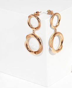 Rekomendasi anting berlian simple lainnya dari Moela, kamu juga bisa menjatuhkan pilihan pada anting-anting dengan desain melingkar seharga Rp2 jutaan. Jika kamu lebih menyukai nuansa whitegold, anting-anting ini cocok digunakan sehari-hari. Kalau kamu lebih menyukai perhiasan emas, ada opsi koleksi perhiasan lain dari The Palace Jeweler yang bisa jadi pilihan. Kamu bisa memilih berbagai perhiasan emas termasuk anting-anting emas di lini Frank Gold. Frank Gold merupakan premium gold jewelry yang dibuat dengan New Technology dari Italia. Lini Frank Gold terdiri dari beberapa koleksi perhiasan, seperti Grande Collection, Geometric Collection, Sleek Twist Collection, dan Deer Charm Mirror Bracelet. Dapat dikenakan oleh pria dan wanita, melambangkan seseorang yang optimis, ceria, berani, suka memakai perhiasan dalam penampilan sehari-hari. Salah satu earrings yang bisa kamu pilih yakni dari Sleek Twist Collection. Anting-anting emas berjenis stud dengan desain ini terlihat begitu elegan untuk melengkapi penampilanmu. Hadir dengan rose gold dengan berat 3,3 gram, anting-anting ini bisa dimiliki dengan harga Rp3 jutaan. Kamu juga bisa memilih anting-anting rose gold dengan model berbeda seperti berikut ini. Dengan desain yang menggantung, gold earrings ini bisa jadi pilihan untuk mengelevasi penampilan saat hadiri momen istimewa.