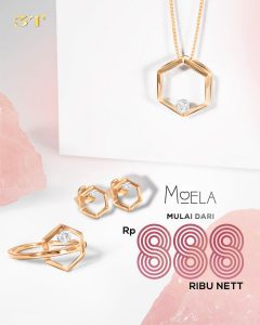 Dalam menyambut dan menikmati momen bersama di bulan suci Ramadan, The Palace Jeweler mempersembahkan berbagai koleksi perhiasan untuk melengkapi penampilan. Seperti koleksi Moela, Frank Gold, Trendy Tennis Ring dan New Solitaire Plus yang membuat penggunanya tampil anggun setiap saat dan juga bisa dijadikan hadiah spesial bagi orang tercinta. Salah satu model anting berlian simple yang bisa jadi pilihan yakni dari koleksi Moela di seri Modela. Berbentuk stud, anting-anting berdesain segi enam ini tampil menawan bercorak gold dan white dengan butir berlian di tengahnya. Earrings seharga Rp2 jutaan ini cocok untuk melengkapi penampilan sehari-hari.