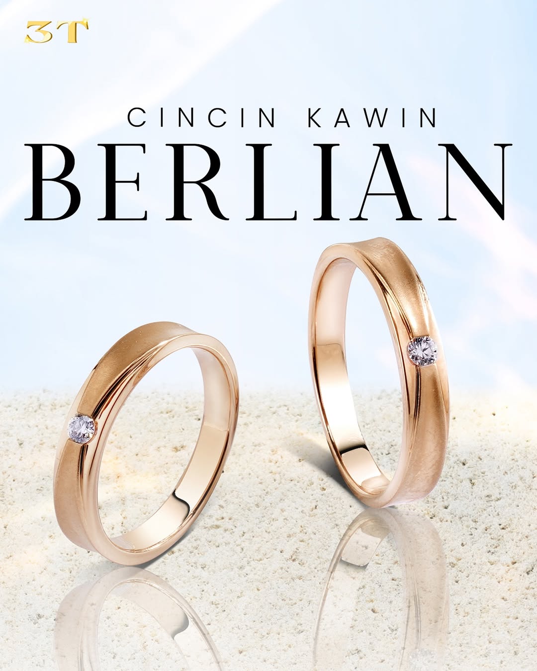 Salah satu desain cincin nikah modern yang paling digemari oleh pasangan masa kini adalah cincin dengan tatahan berlian solitaire minimalis yang memukau. Walaupun memiliki desain simple, cincin ini tetap memancarkan kesan mewah yang subtle.