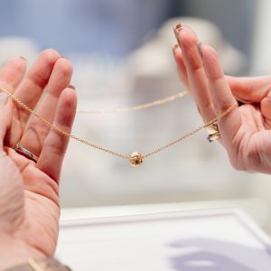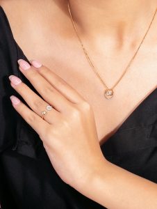 Anda yang menyukai perhiasan wanita dengan nuansa rose gold juga bisa mencoba pilihan liontin cantik ini. Perhiasan dari seri Bermoela ini memiliki model solitaire dengan batu berlian 0,040 carat dan kualitas HVS. Liontin ini dijual dengan harga Rp 1,4 juta-an saja dan cocok bagi kamu yang ingin tampil kekinian, serta stylish setiap harinya.