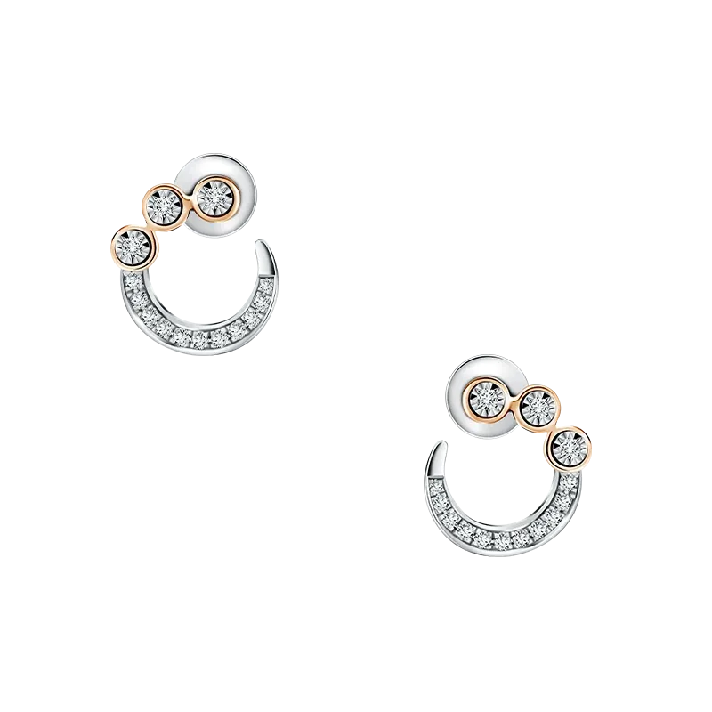 Areumi Haneul Earrings terinspirasi dari kata "Haneul" dalam bahasa Korea yang berarti langit, menyimbolkan ketenangan dan harapan abadi. Perpaduan rose gold dan white gold 18k memberikan sentuhan elegan yang lembut sekaligus kuat. Desain setengah lingkaran yang dihiasi tatahan berlian yang berjejer rapi memperkuat aura klasik yang tak lekang waktu. Detail tiga butir berlian di bagian atas menambah kesan manis dan feminin, menjadikan anting Korea ini cocok untuk Anda yang ingin tampil memesona dengan nuansa anggun nan bermakna.