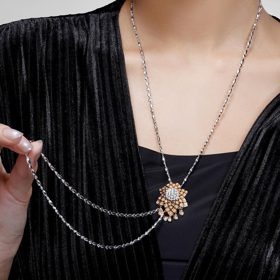 Kilauan Berlian Pada Kalung Glamor untuk Semi-Formal Look