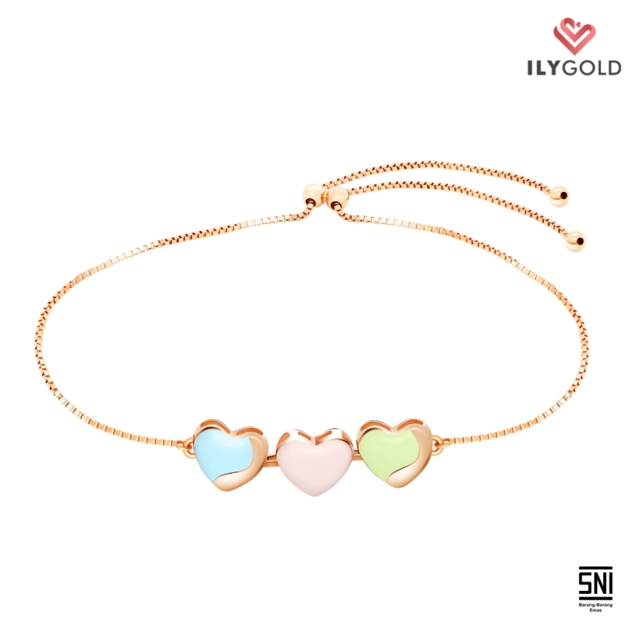 Bayangkan cupcake, macaron, dan permen yang melebur menjadi inspirasi desain cincin, anting, dan kalung berkilau indah dari Sugar Rush. Gelang serut dengan charm tiga hati warna pastel biru, pink, dan hijau menjadi simbol manisnya gula-gula, sekaligus melengkapi koleksi perhiasan yang penuh warna dan keceriaan.