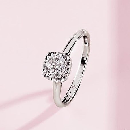 Seri cincin berlian dari The Palace Jeweler ini bisa menjadi hadiah cincin tunangan yang membuat pasanganmu tersipu bahagia. Cincin yang terbuat dari emas putih ini terlihat semakin elegan dan mewah dengan tatahan berlian dengan potongan radiant cut. Cincin cantik ini bisa Anda pinang mulai dari harga Rp9 jutaan.