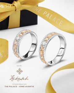 Salah satu cincin nikah berlian yang bisa Anda pilih adalah Kekaseh, merupakan hasil kolaborasi The Palace Jeweler dengan maestrofashion Indonesia, Anne Avantie. Cincin nikah ini punya model unik yang dihiasi motif batik di bagian luar cincin. Tak sekadar ukiran, cincin ini memiliki doa dan makna yang mendalam. The Palace Jeweler ingin setiap orang yang menggunakan cincin nikah couple ini selalu menghargai nilai tradisional dalam sebuah pernikahan dan tidak melupakan adat istiadat.