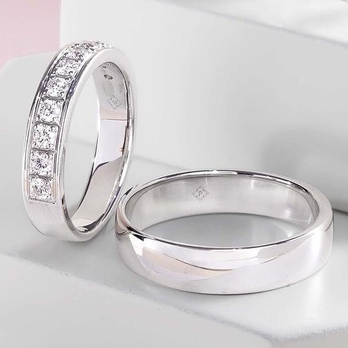 Untuk yang menyukai cincin nikah serasi, maka ini adalah pilihan tepat. Desainnya klasik dan timeless, melambangkan perasaan kasih sayang di antara dua hati yang bersatu untuk selamanya.