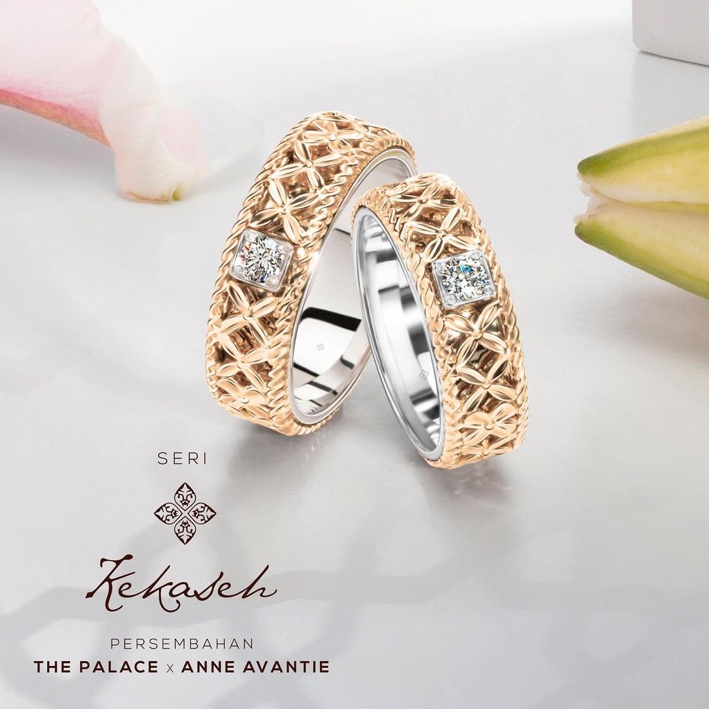 The Palace Jeweler juga menghadirkan koleksi andalan dari Kekaseh yang berkolaborasi dengan Anne Avantie. Koleksi cincin nikah ini memiliki motif batik yang mewah terbuat dari emas 75.5% dan berlian yang berstandar terbaik untuk melengkapi hari bahagia Anda.
