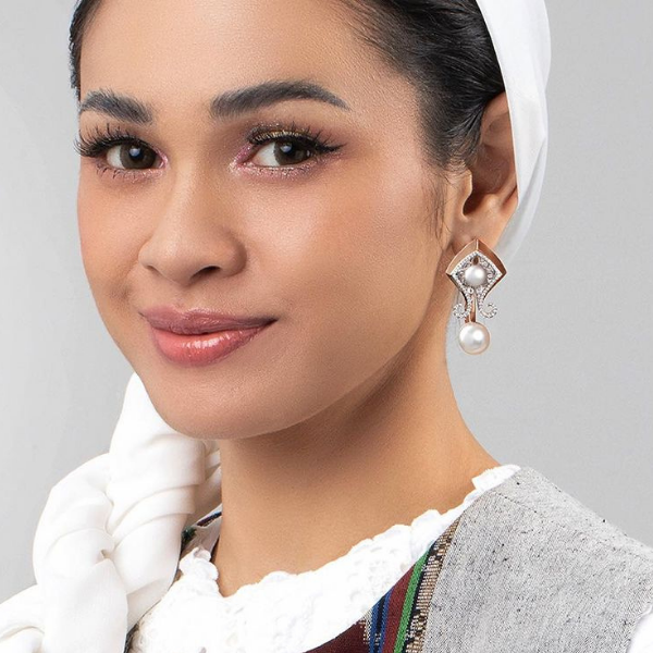 Raline Shah menampilkan pesonanya yang memukau dengan mengenakan kebaya khas Indonesia. Penampilannya semakin disempurnakan dengan memakai anting-anting wanita dari koleksi Nusantara dengan hiasan berlian terbaik The Palace Jeweler.