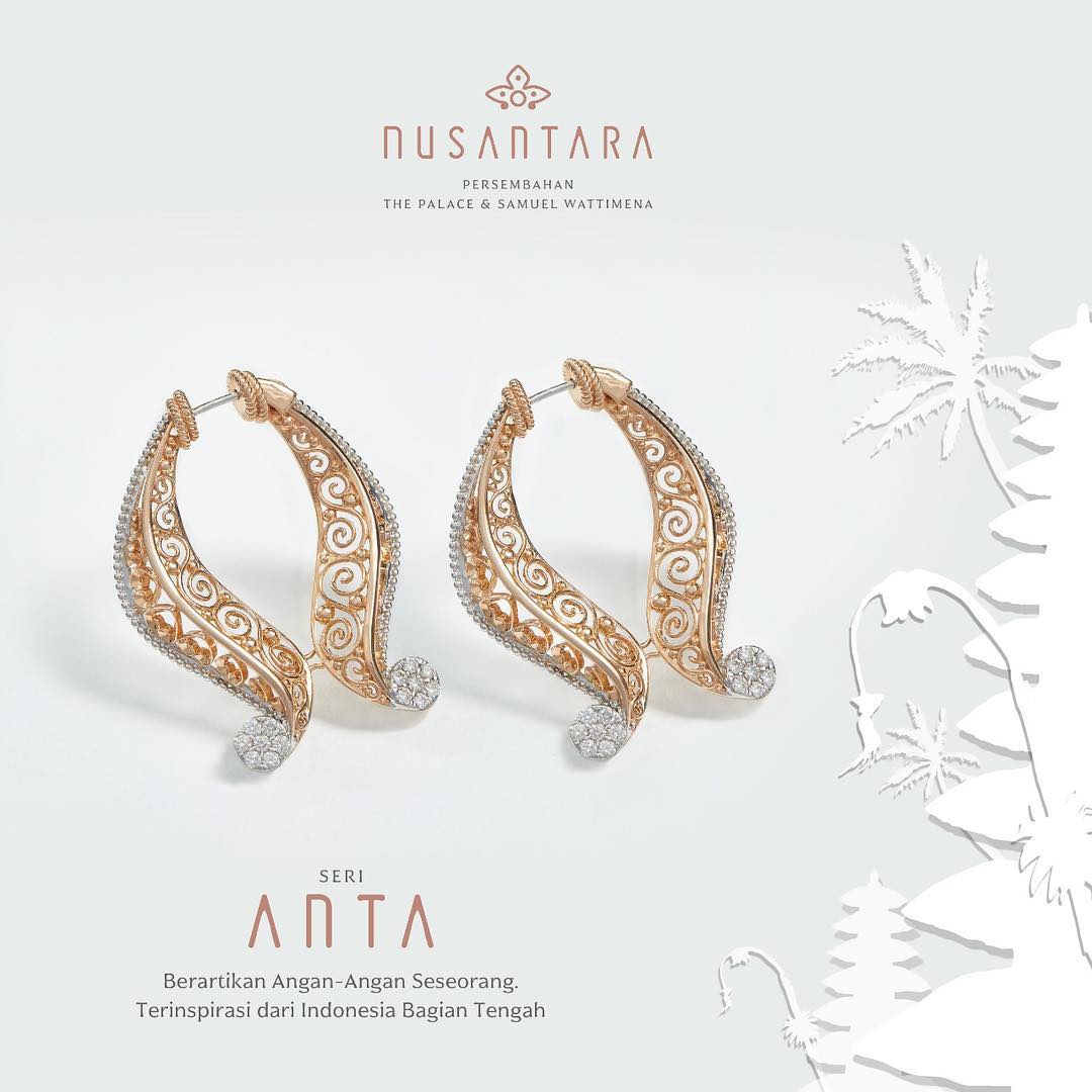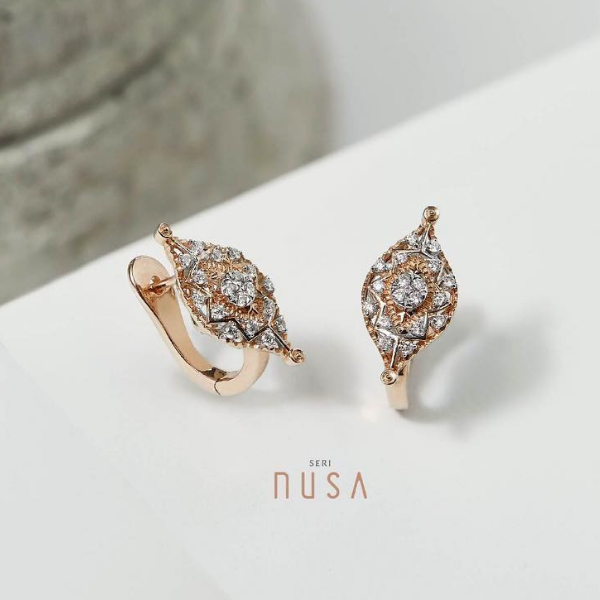 Desain perhiasan dari koleksi Nusantara ini menampilkan detail sempurna khas kearifan lokal. Perpaduan budaya Indonesia yang dibalut dalam kemewahan menjadikan model anting wanita terbaru ini terlihat cantik dan unik.