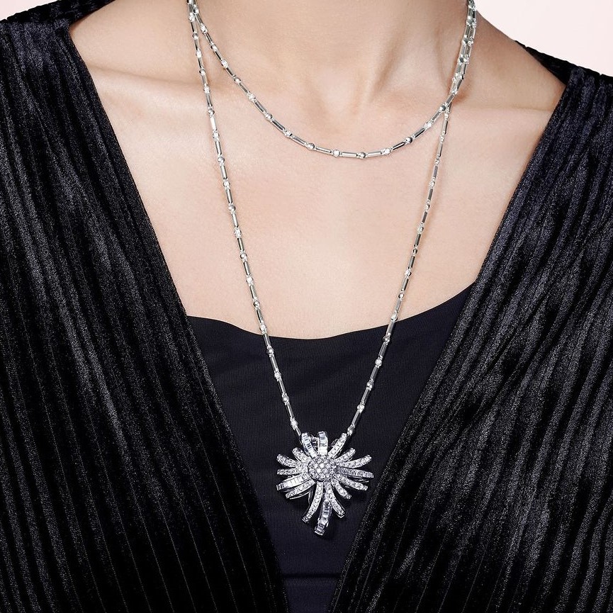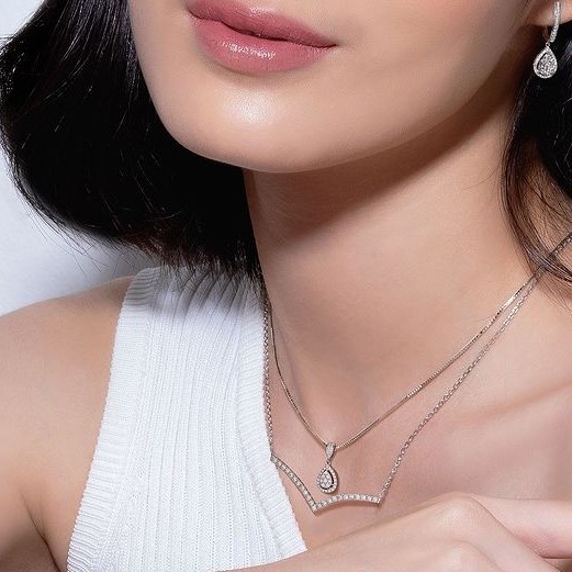 Kenakan kalung berliontin untuk spice up penampilan menjadi lebih ekstra. Anda pun boleh memakai satu set perhiasan berlian pilihan The Palace Jeweler. Dijamin membuat look biasa menjadi istimewa.