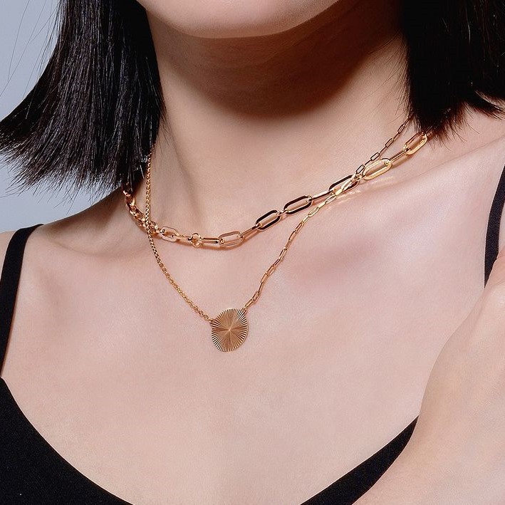 Kalung simpel menjadi pilihan sempurna untuk melengkapi outfit bertema kasual. Kalung dengan desain sederhana, seperti rantai tipis atau kalung dengan liontin kecil, menjadi pilihan paling tepat untuk outfit bertema kasual. Lihat kalung emas yang unik ini dengan liontin bentuk bulat yang estetik.