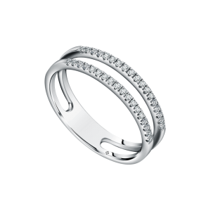 Ada pula Cross Tennis Ring yang hadir dengan nuansa white gold dan tatahan berlian H VS sebanyak 46 butir yang menawan.