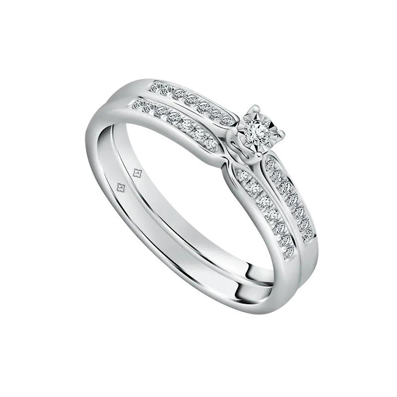 Cincin cantik ini dihiasi dengan 28 buah berlian grade F dengan kejernihan VVS yang disusun berderet dan menampilkan kilauan memukau. Apakah cincin ini menjadi dream wedding ring Anda dan pasangan? Anda bisa membelinya di kisaran harga mulai dari Rp21 juta.