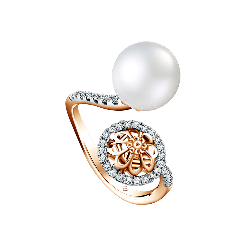 Tak hanya itu, cincin ini nampak semakin unik dengan hiasan mutiara di salah satu ujung dan siluet berbentuk bunga di ujung lainnya. Deretan 37 berlian tenis menghiasi badan cincin berwarna rose gold ini memancarkan aura mewah yang membuat penampilan simple menjadi lebih festive. Anda bisa mendapatkan cincin ini di kisaran harga Rp22 jutaan.