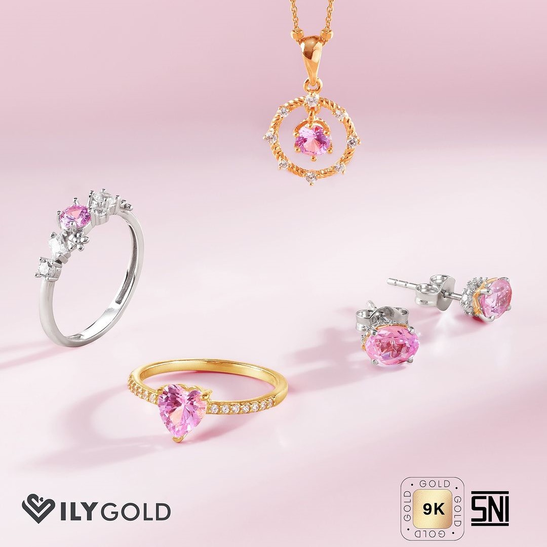 Terbuat dari emas 9K, rangkaian perhiasan ini hadir dengan batu mulia dengan warna yang cheerful. Tak hanya itu, desainnya yang sangat cantik diciptakan khusus untuk para perempuan muda yang ingin tampil cantik dan chic.