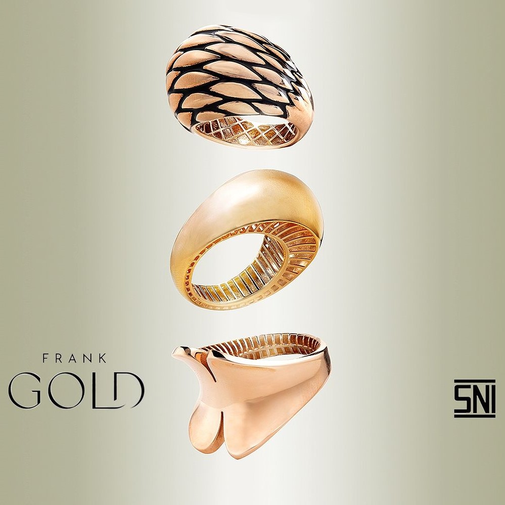 Masih ada koleksi cincin emas dari Frank Gold. Lini ini menghadirkan perhiasan emas premium gold bertatahkan berlian dengan desain eksklusif dan dirancang dengan new technology dari Italia.