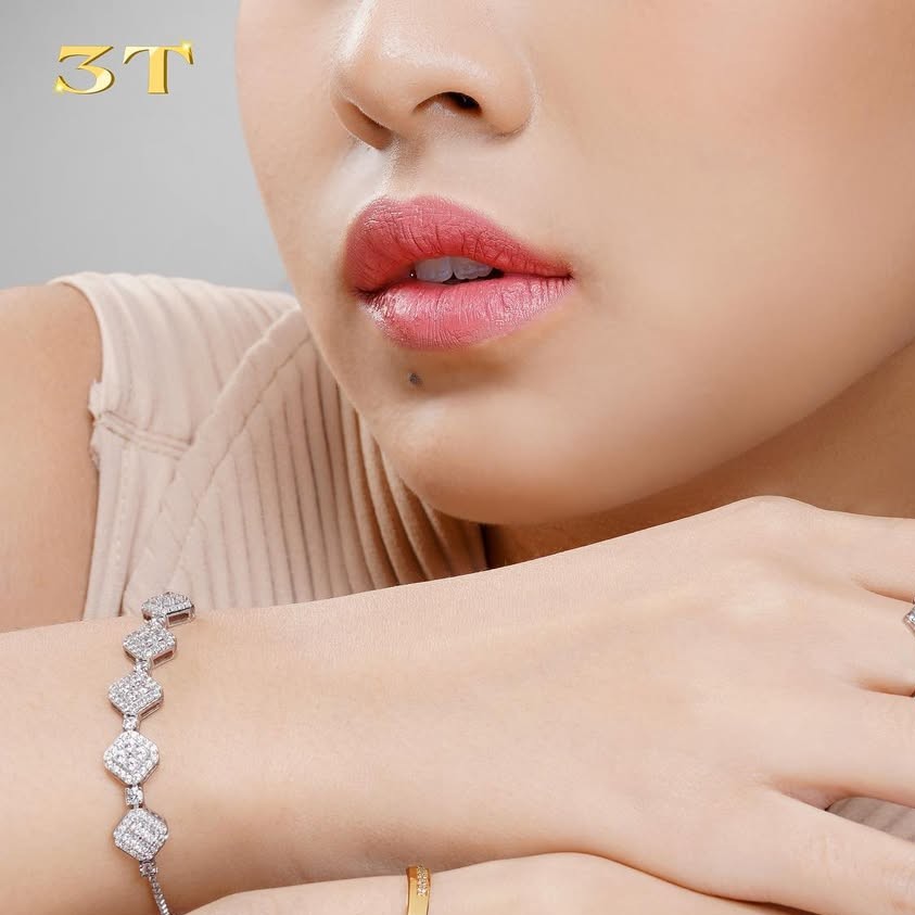 Tampil cantik seperti tokoh utama dalam dongeng romantis dengan gelang charm berlian. Gelang charm ini menampilkan chain emas yang dihiasi batu-batu berlian di sepanjang gelangnya, dengan jarak lebar di antara satu berlian dan berlian lainnya. Di pusat tengah terlihat hiasan berbentuk hati yang dibingkai dengan berlian-berlian kecil.