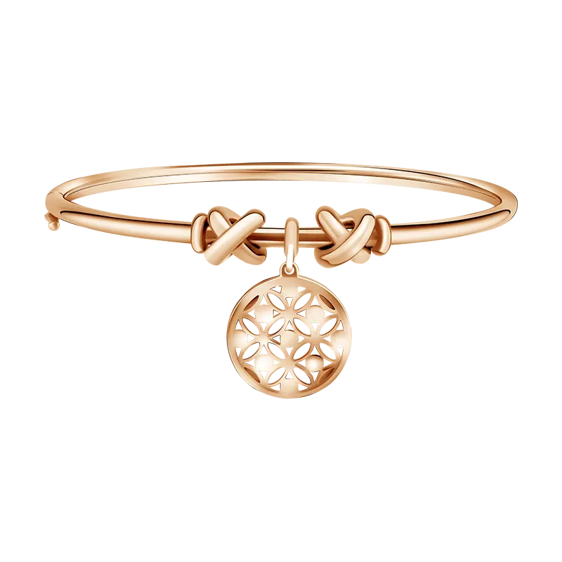 Gaya minimalis semakin menawan dengan sentuhan klasik dari Bangle Nusantara Gelang Emas Kasmaran Teruntai Cakram. Gelang bangle modern ini memadukan desain elegan dengan nuansa budaya melalui liontin bundar seperti medali yang dihiasi motif bunga geometris, menjadikannya pilihan sempurna untuk Anda yang ingin tampil simpel namun tetap berkarakter.