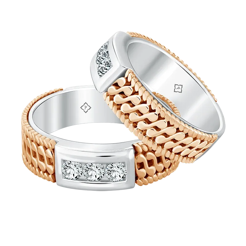 Cincin Kekaseh Parang Kusumo Tresno memancarkan nuansa kekuatan cinta dan keteguhan hati melalui desain yang terinspirasi dari motif batik penuh makna. Dilengkapi tiga butir berlian F VVS dan estimasi berat emas 5.877 gram, The Palace Jeweler Cincin Kawin ini menghadirkan perpaduan sempurna antara keindahan tradisi dan kemewahan modern dalam simbol ikatan suci pernikahan.