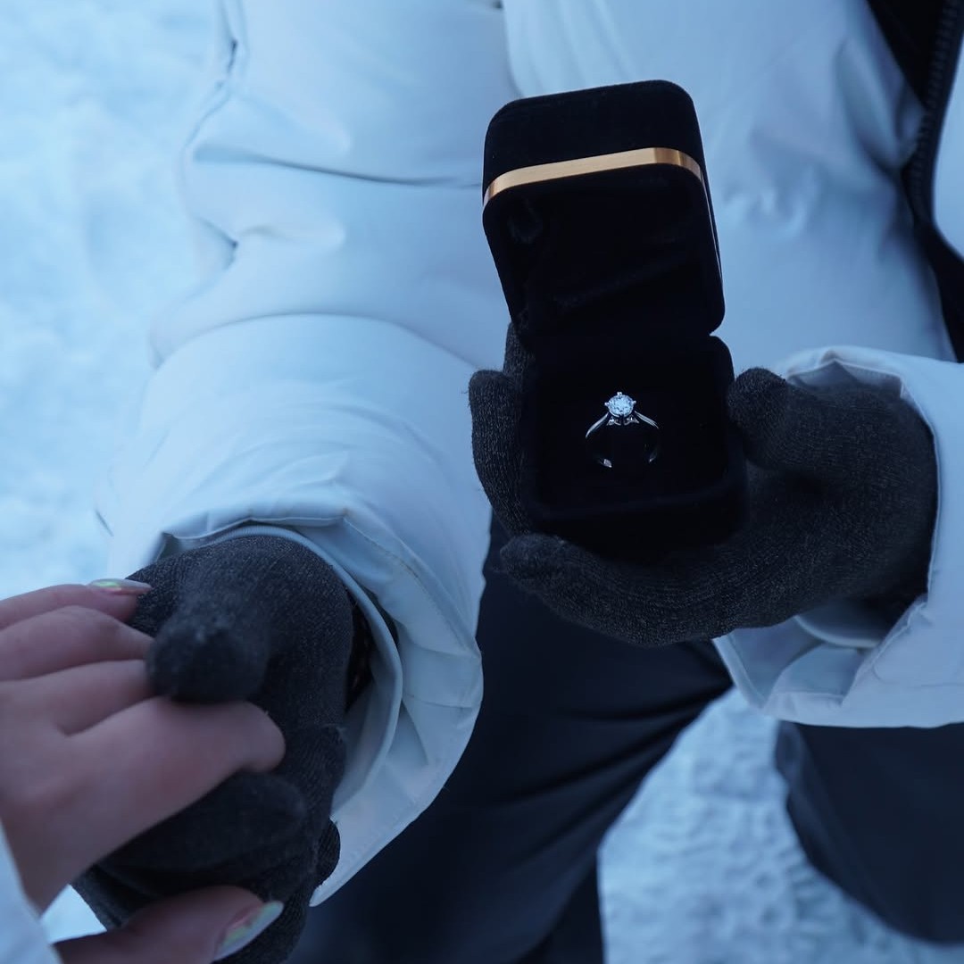 Untuk menandai hari bersejarah di dalam hubungan mereka berdua, Jonathan Alden memilih engagement ring dengan berlian solitaire yang berkilau bagaikan bunga permata yang mekar di tengah-tengah bukit bersalju. Ditambah lagi, cincin tersebut terbuat dari white gold atau emas putih yang semakin memperkuat pancaran kilau alami dari diamond yang menjadi center of the stone dari cincin tersebut.
