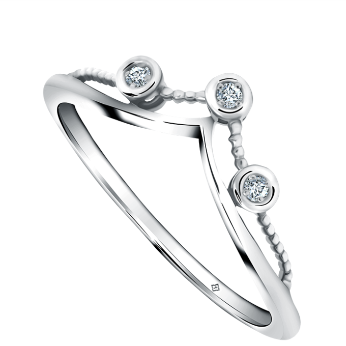 Trimoela Kruna adalah salah satu model cincin berlian dari seri MOELA yang memiliki desain unik dan cocok Anda persembahkan untuk meminang sang pujaan hati. Cincin emas putih ini dihiasi dengan 3 buah berlian trilogy yang disusun secara apik yang menampilkan kilauan alami nan mempesona. Desain cincin ini sendiri membentuk siluet sebuah mahkota yang tentunya sangat layak dipersembahkan untuk ratu di hati Anda.