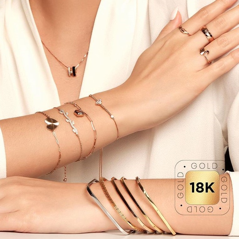Jika Anda mencari perhiasan emas yang dapat Anda pakai setiap hari tanpa khawatir rentan rusak, emas 18 karat adalah pilihan yang terbaik. Emas 18K adalah opsi yang bagus mempertimbangkan antara kemurnian dan daya tahan. Sehingga cocok untuk cincin pertunangan, cincin kawin, dan perhiasan lain yang biasa Anda kenakan. Dengan warnanya yang kaya dan daya tariknya yang tak lekang oleh waktu, perhiasan emas 18K dapat meningkatkan gaya sehari-hari Anda.