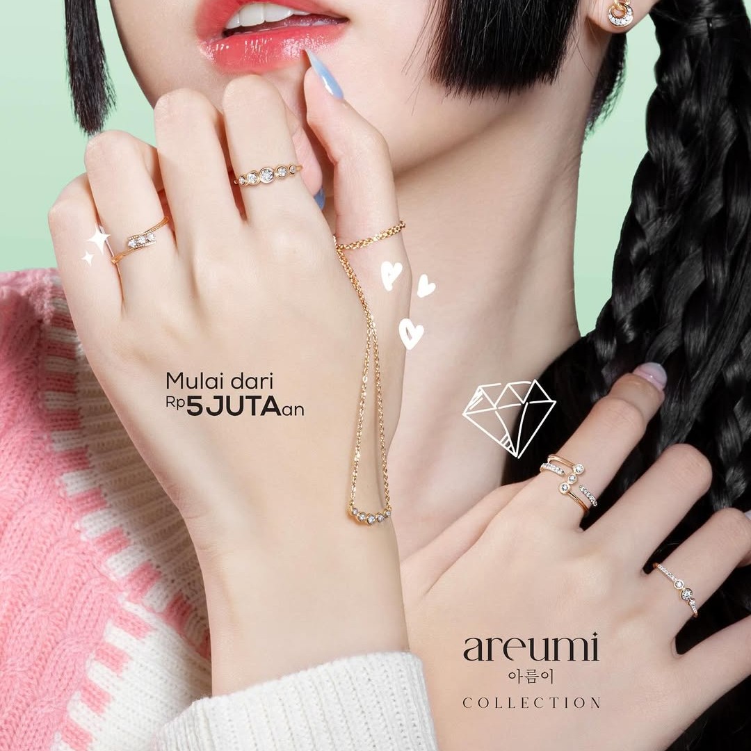 Melalui koleksi perhiasan terbarunya yaitu Areumi, The Palace Jeweler mempersembahkan koleksi kalung Korea dengan desain fun dan fashionable yang terinspirasi tren fashion Korea terbaru, lengkap dengan kualitas emas terbaik dan standar 3T: Therjamin, Therjangkau, Therlengkap. Koleksi ini juga menghadirkan sentuhan feminin ala K-Drama yang membuat penampilan Anda semakin anggun dan memesona.