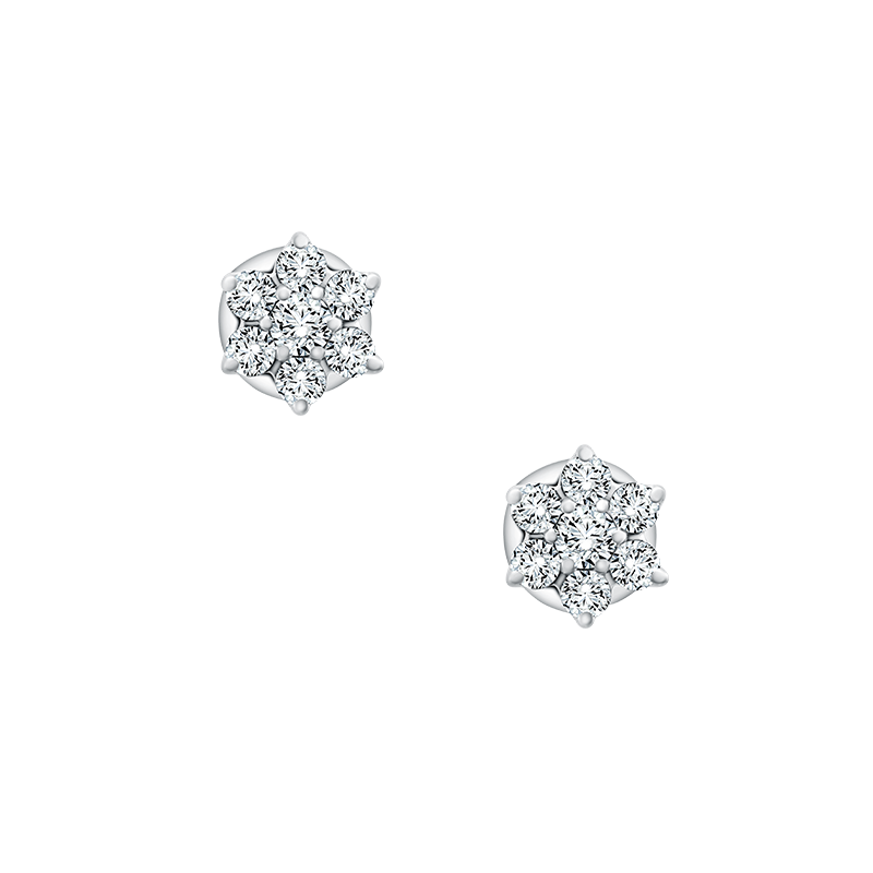 Mungil namun cocok untuk dikenakan di berbagai momen spesial, Anting Tusuk Berlian Ilusi Raka Bunga ini dibalut dalam white gold 18K berhiaskan berlian dengan desain bunga yang menawan.