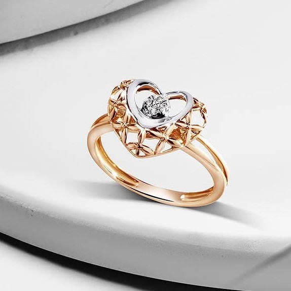 Sembari melihat-lihat koleksi cincin emas 18K dengan berlian, atau perhiasan lainnya, Anda dapat mengintip cincin Kasmaran lebih dekat. Tercipta nuansa romantis dari cincin emas dengan elemen berbentuk hati, dihiasi tatahan berlian.