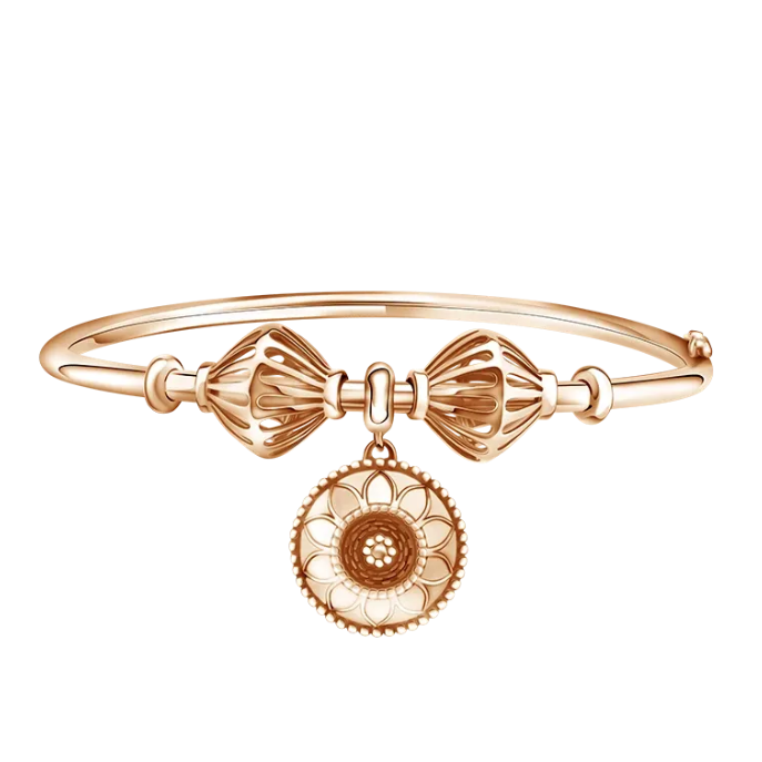 Dari gelang ini terpancar kemewahan dan keindahan budaya Indonesia yang khas. Gelang emas yang dipenuhi tatahan berlian ini cocok untuk siapa saja yang ingin tampil cantik dan menawan dengan perhiasan yang berkilau. Desainnya yang unik juga menjadi signature yang berkesan.