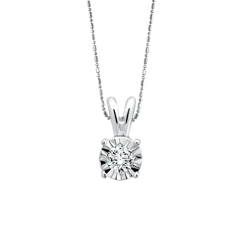 Liontin Moela Modela Ranca menampilkan desain geometris berbentuk berlian terbalik yang tampak unik dalam balutan emas white gold 18K. Kilau berlian solitaire berkualitas VS di tengah liontinnya menghadirkan kilau dan pesona modern nan feminin. Simbol cinta yang berani dan elegan dari koleksi ini menjadikannya pilihan sempurna sebagai kalung pertunangan yang mewah dan berkarakter.