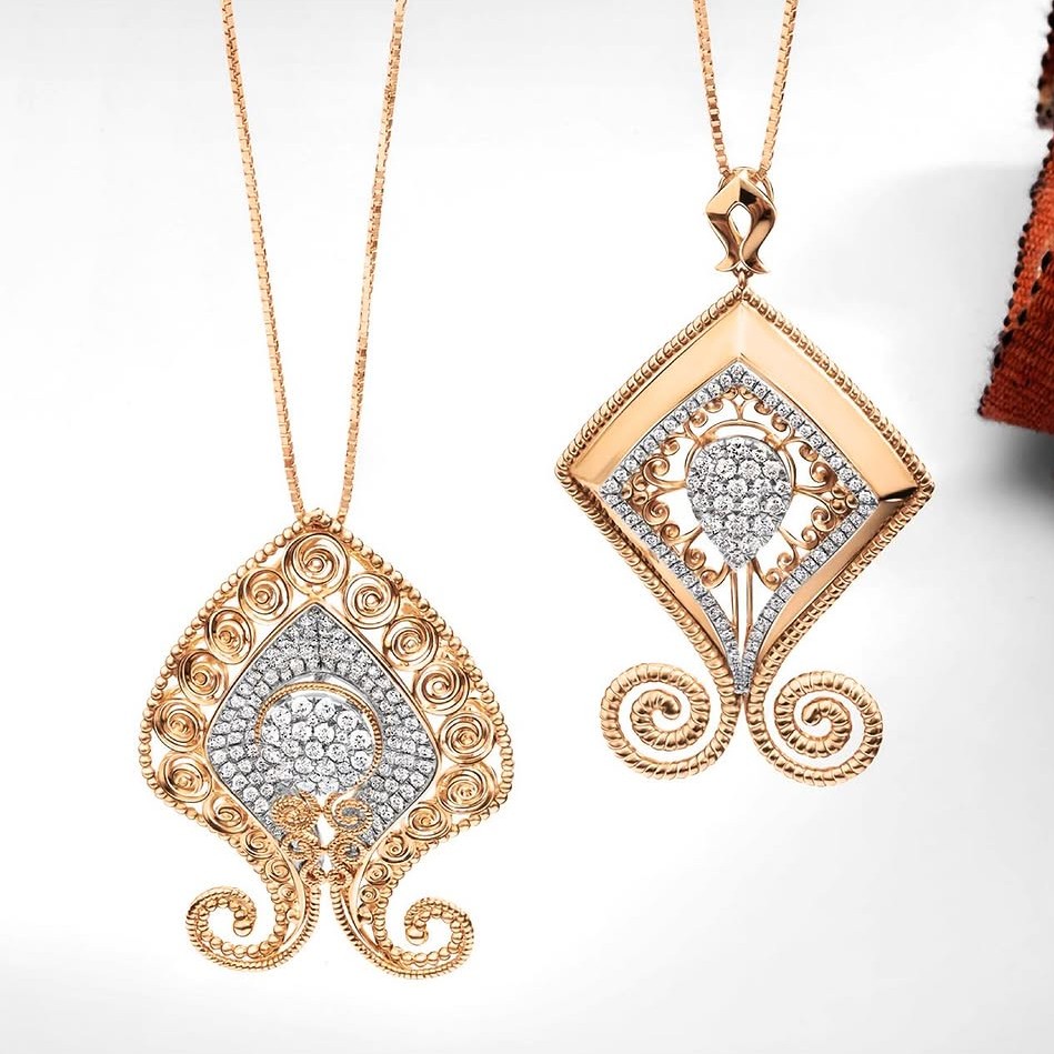 Untuk acara keagamaan dan bernuansa tradisional, model liontin bernuansa etnik atau simbolik bisa jadi pilihan. Liontin kalung emas dengan berlian dan aksen simbol budaya atau motif khas Nusantara membuat tampilan lebih anggun dan elegan. Menggunakan kombinasi yellow gold dan rose gold, liontin ini tampil menarik dengan ukiran yang detail. Satu liontin bisa mengubah tampilan jadi lebih extra! Apalagi kalau desainnya yang spesial dan mewah dari koleksi Nusantara persembahan The Palace Jeweler lace yang berkolaborasi dengan Samuel Wattimena berikut ini!
