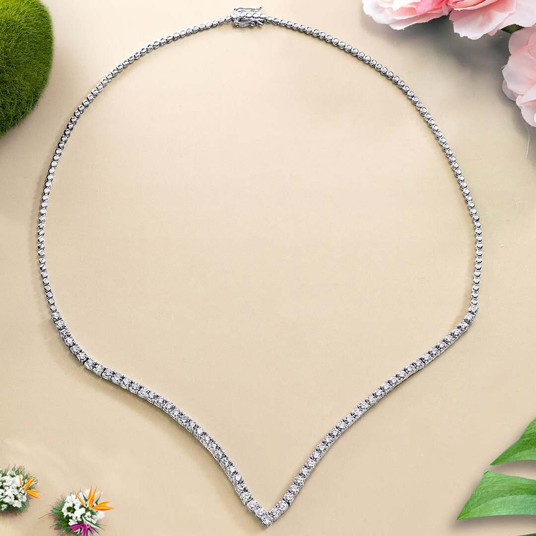 Salah satunya adalah rangkaian model kalung dengan hiasan berlian tenis yang hadir dengan desain simple namun menghadirkan kesan sophisticated dan memancarkan keanggunan. Kalung berlian tenis adalah kalung yang dihiasi dengan jejeran berlian berukuran kecil yang masing-masing memancarkan pesona kilauan alami yang memikat pandangan.
