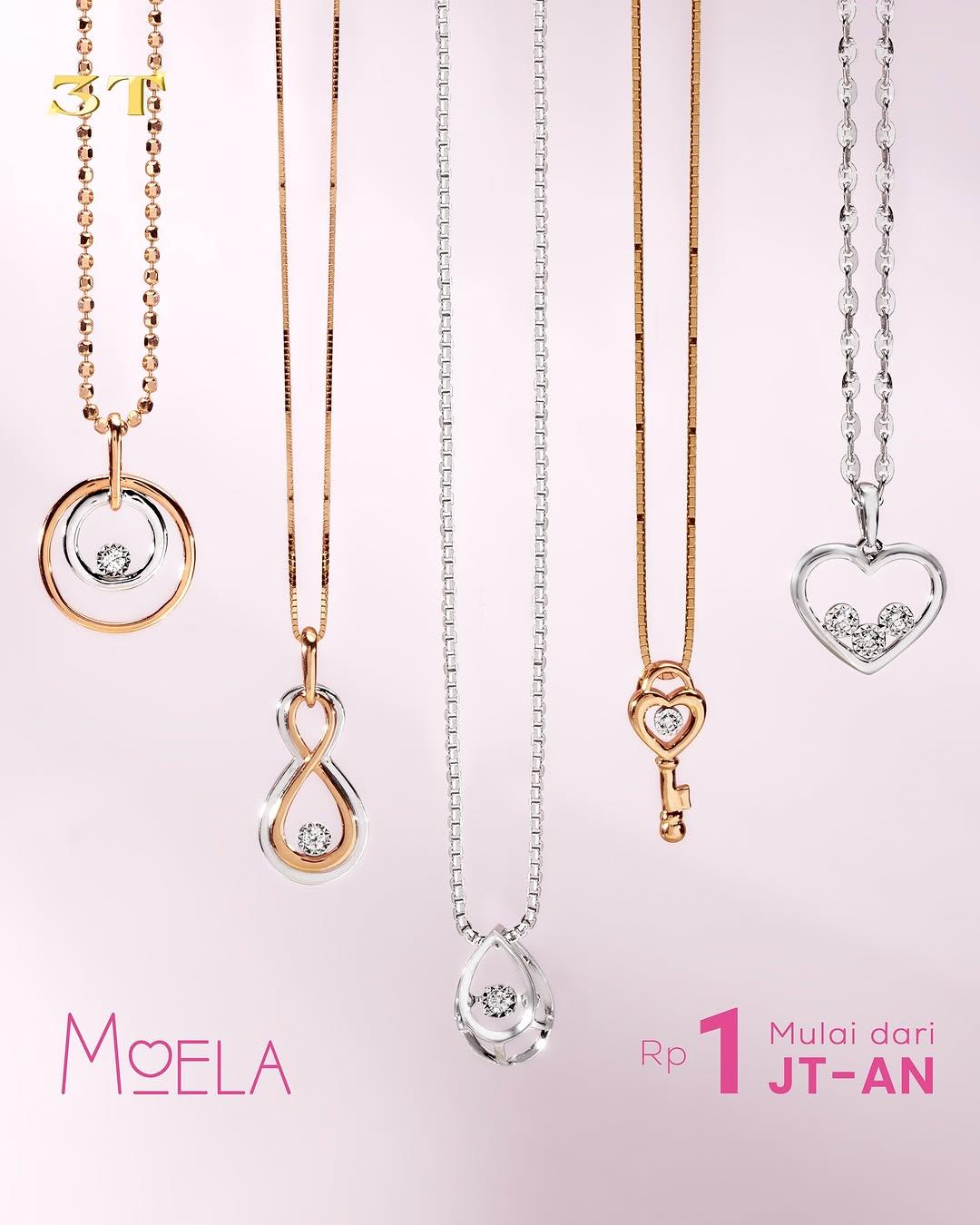 Terlebih lagi perhiasan liontin ini dihiasi dengan tatahan berlian yang menghasilkan kilauan mewah yang membuat penampilan Anda semakin memukau. Kabar baiknya, ragam desain liontin dari koleksi MOELA ini bisa Anda banderol di harga yang sangat terjangkau, yaitu mulai dari Rp1 jutaan saja sudah berhiaskan berlian. Tertarik?