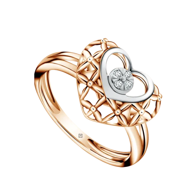 Cincin Kasmaran Ceti juga menghadirkan siluet yang tak kalah unik. Cincin berwarna rose gold ini memiliki bentuk separuh hati dengan tatahan 4 butir berlian di ujungnya. Sedangkan, sisi lainnya membentuk lengkungan menyerupai daun dengan motif bunga seperti yang umum Anda lihat pada motif kain batik. Desainnya yang unik tentunya akan membuat semua mata berpaling dan terkagum-kagum.