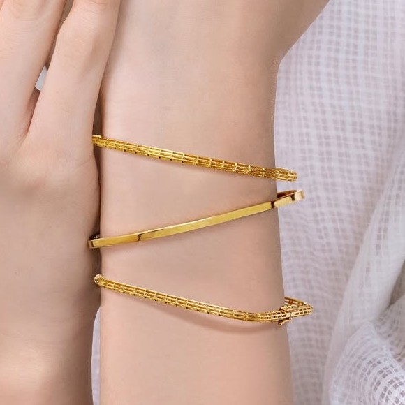 Gelang yellow gold memiliki pesona klasik yang tak lekang oleh waktu