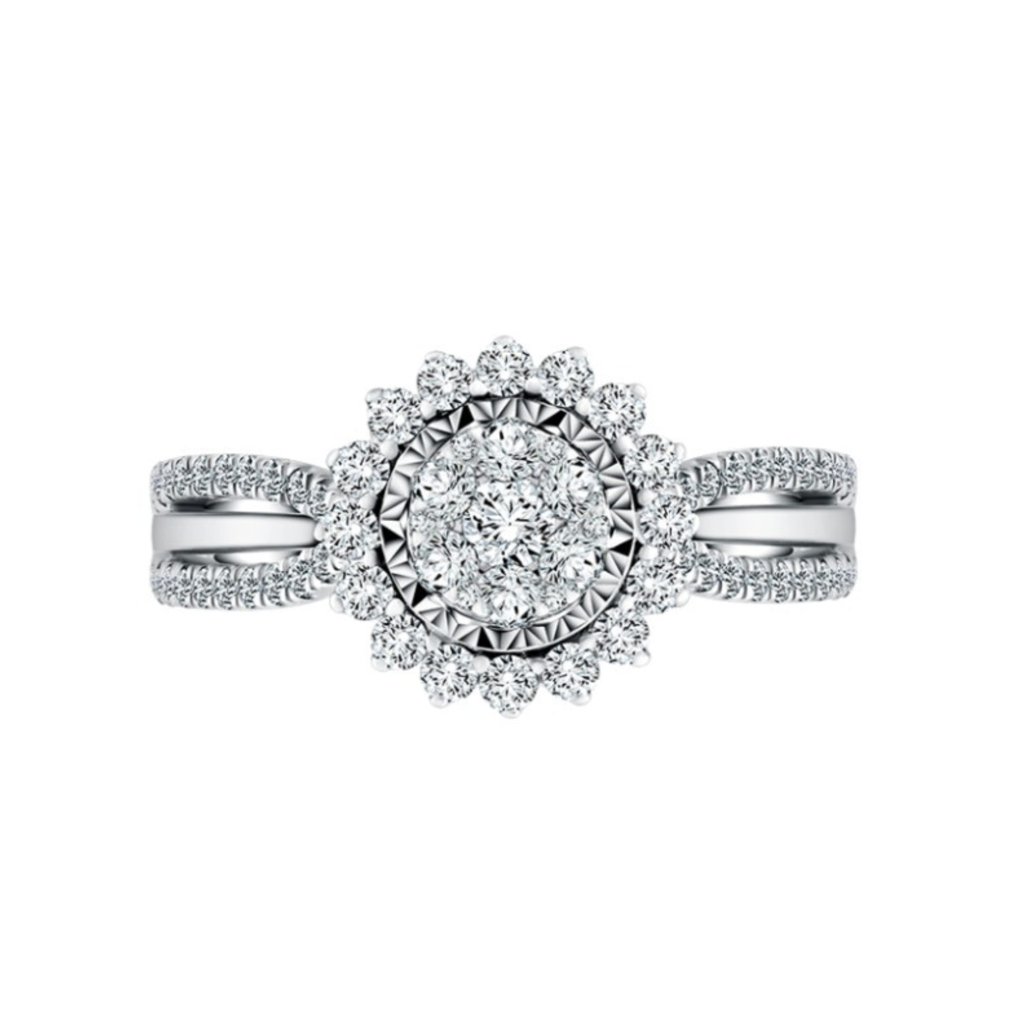 Ladies ring satu ini juga bisa buat jari-jemari makin elegan nan memesona. Dilengkapi dengan setting berlian berbentuk lingkaran di tengahnya.