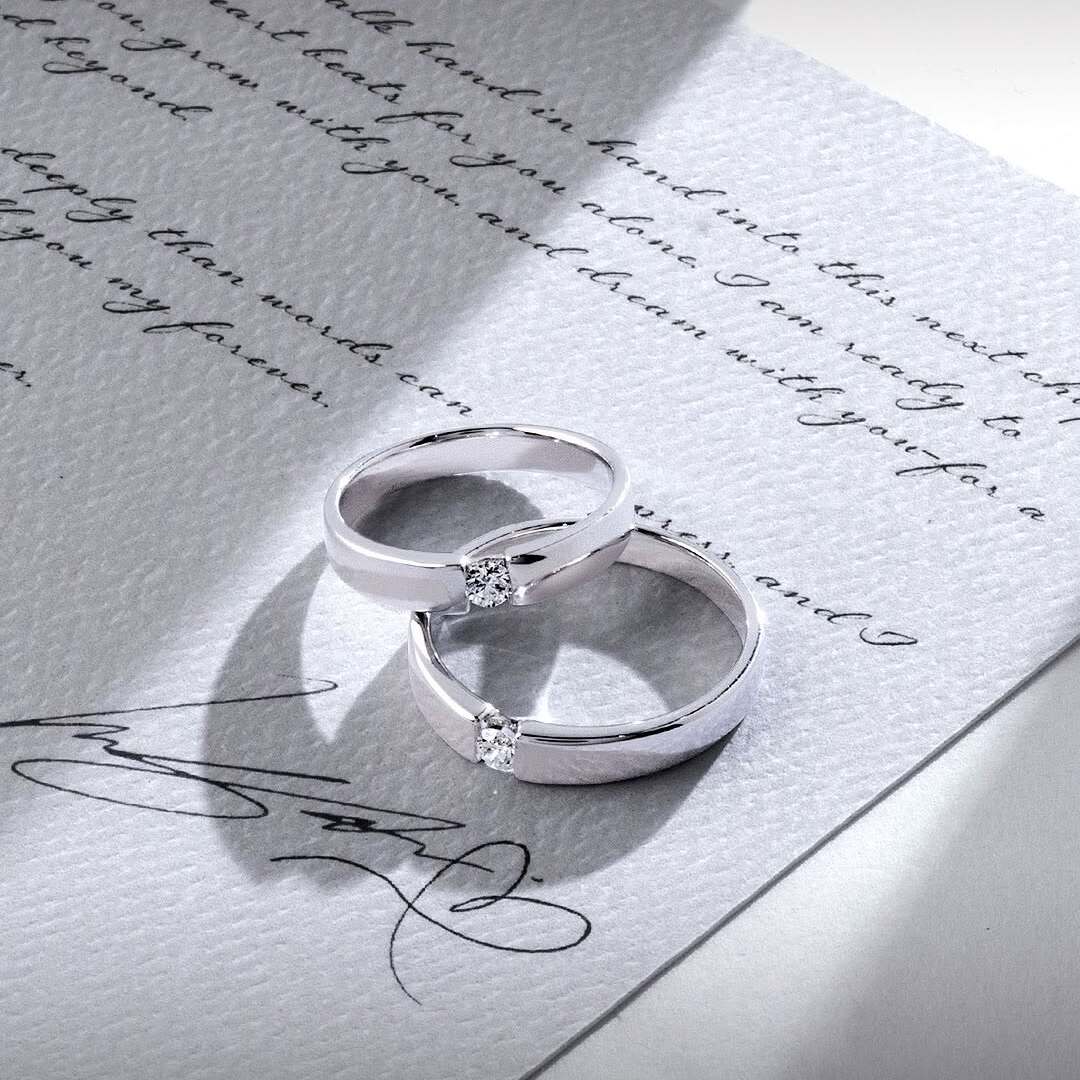 Untuk penggemar wedding ring bernuansa white gold, cincin ini sempurna untuk Anda dan pasangan. Rayakan kisah cinta Anda dengan koleksi cincin kawin yang simple, minimalis, namun tetap mewah dengan kilau berlian asli bernuansa white gold.