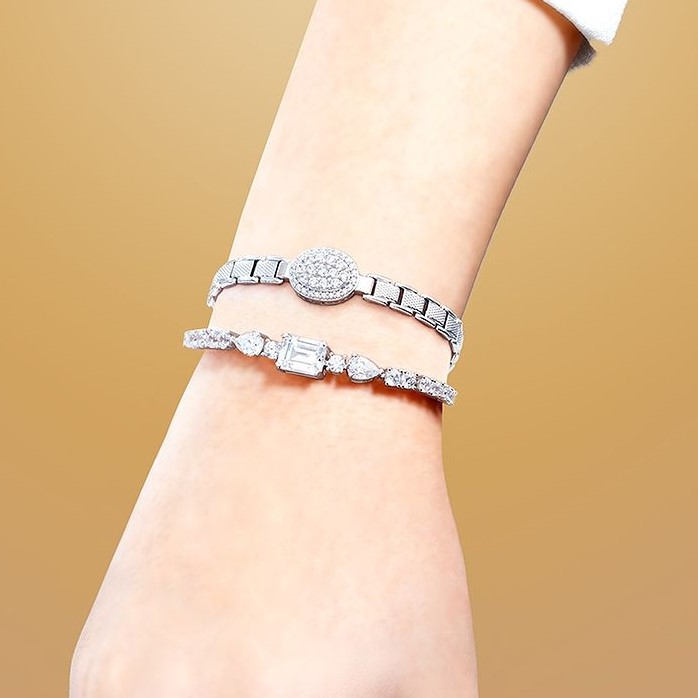 Gelang dari The Palace Jeweler ini dapat menjadi pilihan sempurna untuk melengkapi kebaya Encim. Dilengkapi dengan tatahan berlian yang mewah, gelang ini membuat siapa saja terpana melihatnya. Perhiasan ini cocok untuk apapun gaya personal Anda.