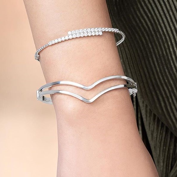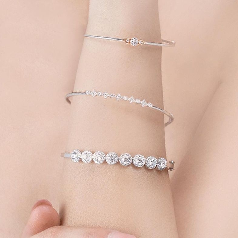 Kebaya Sunda yang indah akan terlihat makin sempurna dengan dilengkapi gelang model bangle. Untuk inspirasinya, Anda bisa memilih bangle yang minimalis tapi dilengkapi dengan deretan berlian yang berkilau.