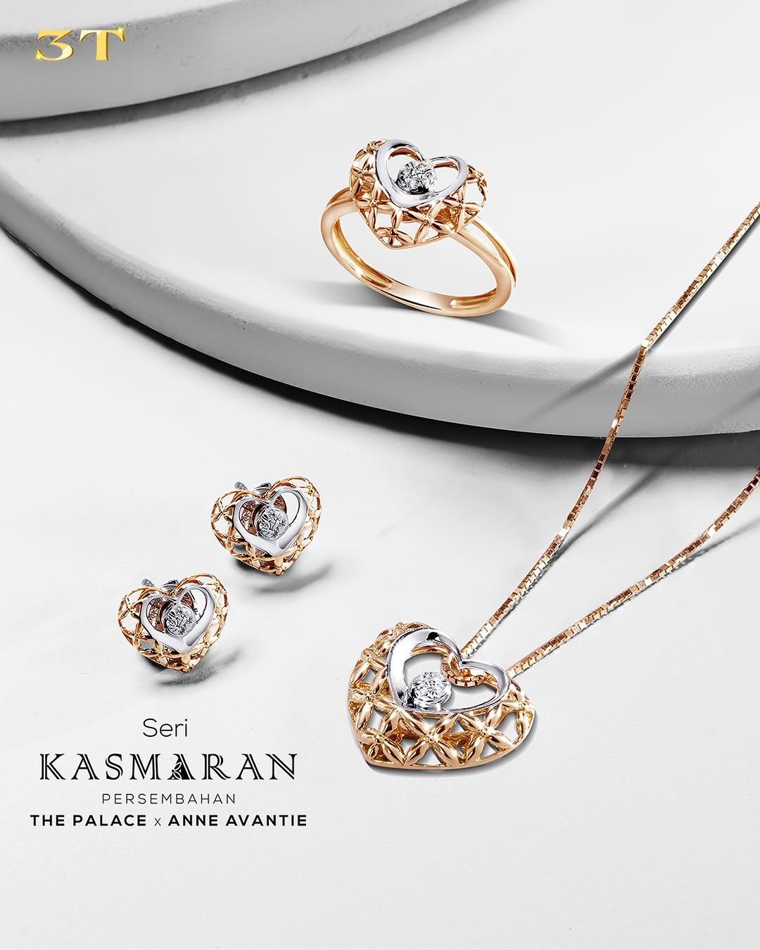 Kasmaran adalah koleksi perhiasan kedua yang terlahir berkat kolaborasi antara The Palace Jeweler dengan Anne Avantie. Pada seri perhiasan ini, lagi-lagi Anne Avantie mengusung inspirasi motif batik tradisional yang sangat unik dan bermakna dalam, yaitu motif bunga kawung. Motif batik ini memiliki makna kesucian cinta yang membuatnya sangat ideal sebagai hadiah ulang tahun untuk istri tercinta. Desain set perhiasan ini nampak semakin elegan dengan adanya tatahan berlian yang sangat memukau.