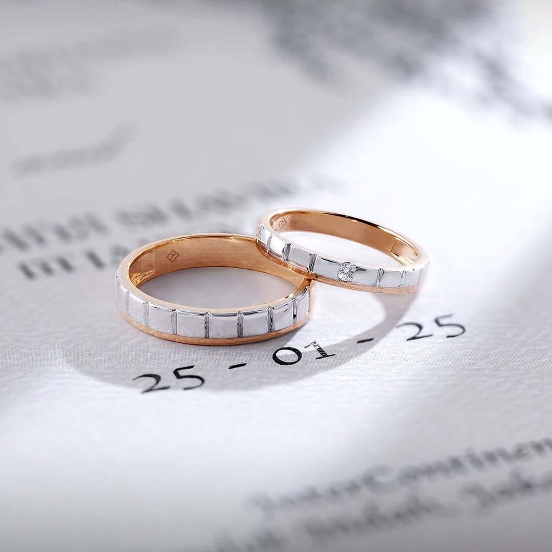 Ketika memilih model cincin nikah, sebaiknya pilih satu warna logam dan mencocokkannya dengan skin tone. Kalau memiliki warna kulit cool tone, cincin dengan nuansa silver ataupun white gold cocok untuk melengkapi gaya. Sementara untuk warna kulit warm tone, cincin dengan nuansa yellow gold dan rose gold bisa jadi pilihan.
