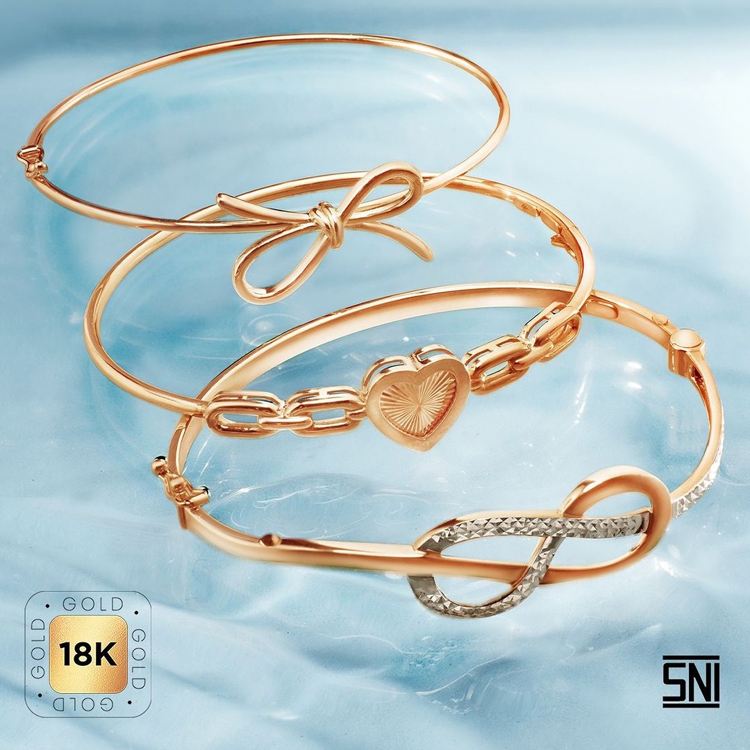Salah satu model emas gelang terbaru dari The Palace Jeweler untuk menyempurnakan busana Y2K adalah gelang emas dengan motif hati ini. Desainnya yang modern membuat busana Y2K kreasi Anda memunculkan kesan youthful.