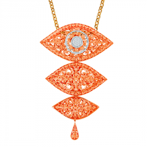 Salah satu seri dalam koleksi perhiasan Nusantara, yakni bertajuk Tara. Seri Tara mewakili perhiasan Indonesia bagian Timur dengan inspirasi dari Mas Bulan Base, Belak, dan Pepek Sortil. Perhiasan khas daerah Maluku Tenggara dan Timor ini memiliki makna kebijaksanaan, kekuatan, serta kebebasan jiwa yang menyusun kisah keberhasilan asa dan cita. Adapun motif paling dominan dari seri Tara yakni bentuk matahari. Matahari sebagai lambang emas merupakan kepercayaan yang diyakini masyarakat. Di seri ini, Samuel meracik siluet perhiasan khas daerah tersebut ke dalam koleksi perhiasan anting-anting, cincin, dan unique diamond necklace, yang didominasi bentuk lingkaran. Meski demikian, esensi dan tampilan mewah tetap tergambarkan lewat pilihan emas dan berlian yang dipadukan. Salah satu model unique diamond necklace seri Tara adalah kalung yang satu ini. Dengan desain menawan yang kaya akan nuansa etnik, kalung ini tampil atraktif sebagai statement pada penampilan Anda. Terdapat tiga ornamen siluet matahari berbentuk lingkaran yang menyusun tiga tingkatan pada unique diamond necklace ini. Di setiap ornamennya, terukir indah motif dan goresan ukiran yang penuh makna budaya. Tak lupa, butiran berlian menjadi pemanis tampilan kalung dengan ornamen berbentuk lingkaran ini. Unique Diamond Necklace Terbaru dari The Palace