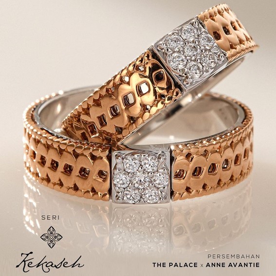 The Palace Jeweler menghadirkan model cincin nikah dengan desain nuansa kearifan lokal yang terwujud dalam koleksi Kekaseh. Koleksi persembahan The Palace Jeweler dan Anne Avantie ini ini terinspirasi oleh motif batik yang kaya makna filosofis dalam kehidupan.
