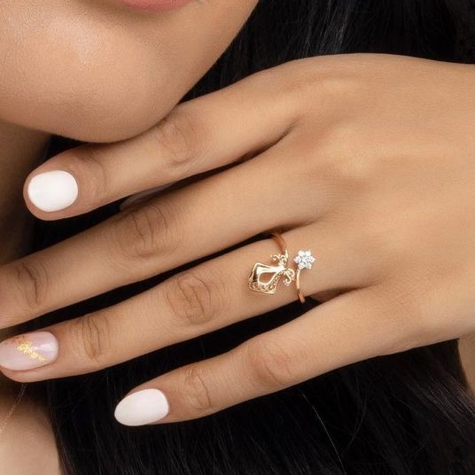 Cincin emas dengan berlian yang cantik dengan desain unik. Perhiasan mungil nan elegan ini membuat siapa saja terpesona melihatnya.
